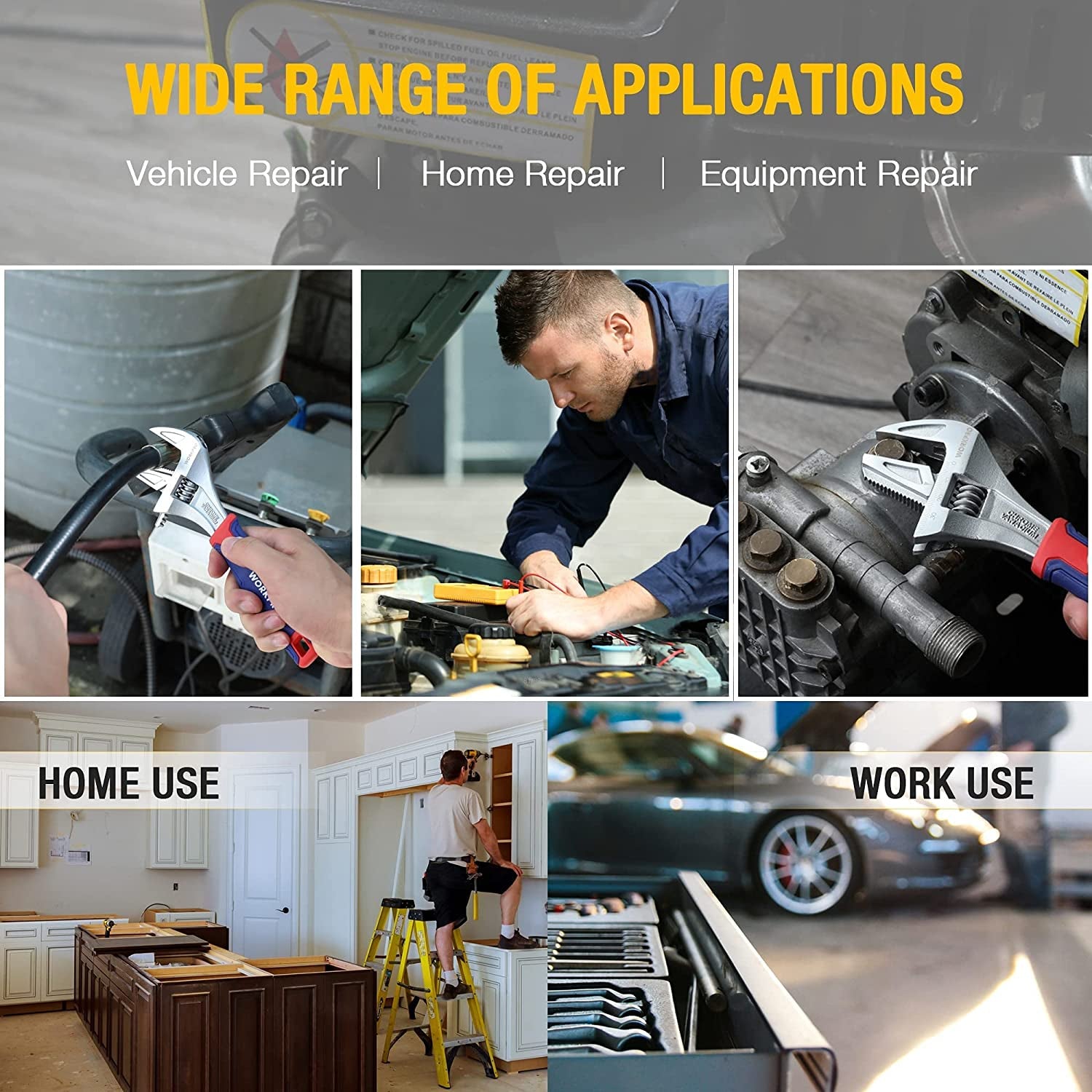 - 【Wide Applications】This 2-in-1 adjustable wrench adapts to all types of screws and nuts. It is Ideal for repairing pipes, mechanisms, automobiles, non-motorized vehicles, electricians and family emergency repairs.
