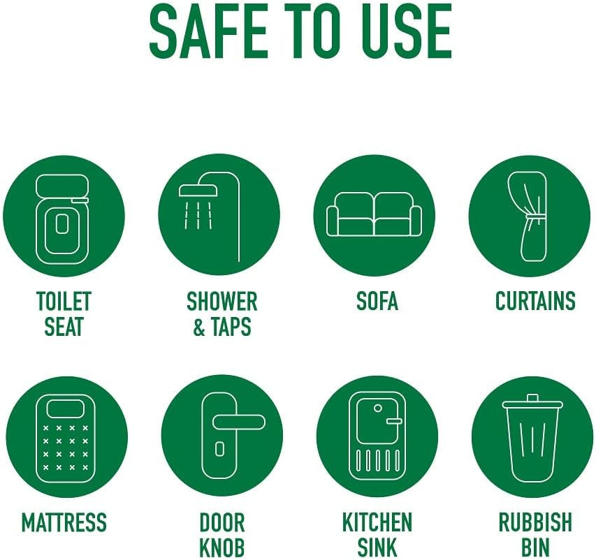 - For use around toilet areas; in empty kitchen bins; in sick rooms; on door handles; on shower bases; under sinks;