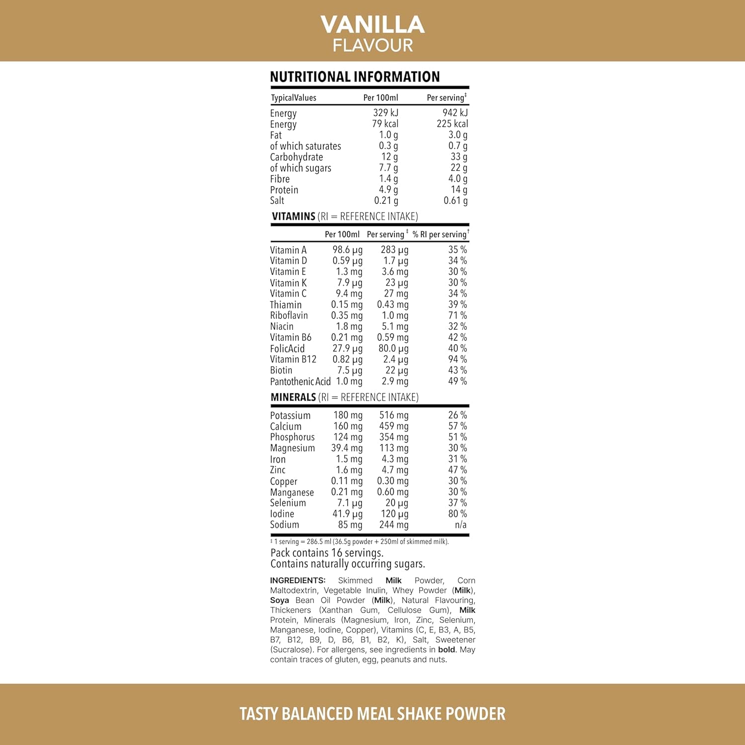 Balanced Meal Shake, Healthy Shake for Balanced Diet Plan with Vitamins and Minerals, High in Fibre, Vanilla Flavour, 16 Servings, 584 G