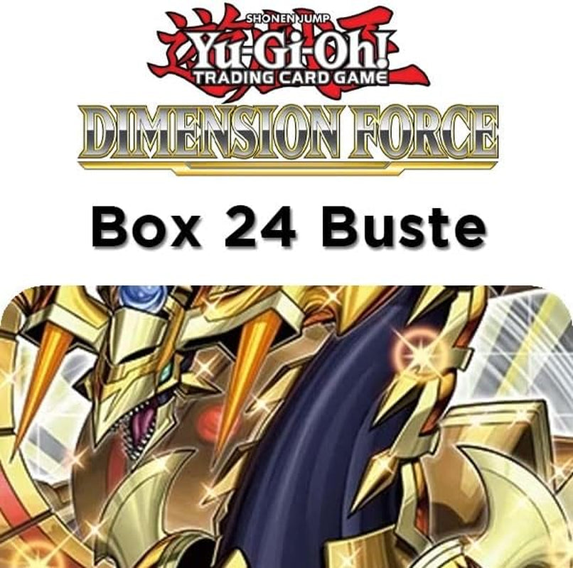 Break down the barriers of reality with Dimension Force, the latest core booster for the Yu-Gi-Oh! TRADING CARD GAME (TCG). This 100-card set includes multiple brand-new themes as well as new cards for older strategies. Fans of Yu-Gi-Oh! ARC-V can swing into action with brand-new “Performapal” cards and a new “Odd-Eyes” monster that’s the first ever Ritual Pendulum Monster! Re-animate strategies from the past with a new “Red-Eyes” Zombie Synchro Monster that can Special Summon other Zombie monsters and even itself from the Graveyard! Dimension Force is full of dynamic cards ready to push the Deck-building possibilities to the limit! Here is just some of what you can expect: • A brand-new Link Monster ready to take Pendulum strategies beyond what was once thought possible! Look out for cards ready to elevate any Pendulum-based strategy. • Powerful Synchro Monsters, including a Level 11 Psychic Synchro Monster that becomes unaffected by the opponent’s activated effects and can unleash a devastating attack the further you fall behind in Life Points! • Fusion Summon with brand-new “Predaplant" and “Starving Venom” cards prepared to devour your opponent’s monsters! • More cards for themes introduced in Return of the Duelist, Storm of Ragnarok, The Grand Creators, and more! • The next volume of cards for the World Premiere theme introduced in Battle of Chaos! • And much more! The Dimension Force booster set contains 100 new cards: 50 Commons 26 Super Rares 14 Ultra Rares 10 Secret Rares *Set content subject to change