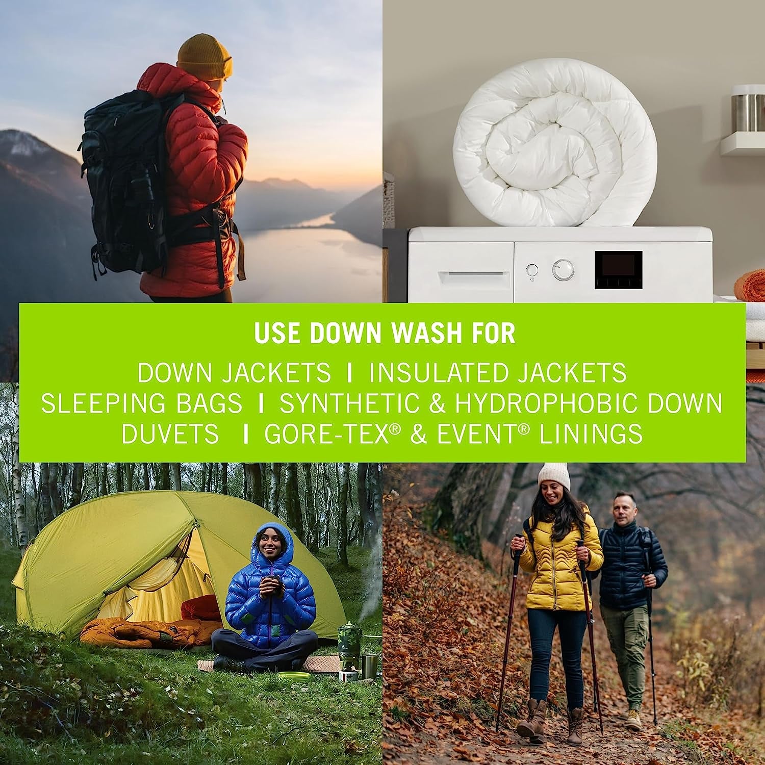 - POWERFUL CLEANING – Down Wash is a concentrated, easy-to-use, cleaner formulated for down and synthetic down. It removes dirt and odours from all down jackets, insulated sleeping bags and duvets.