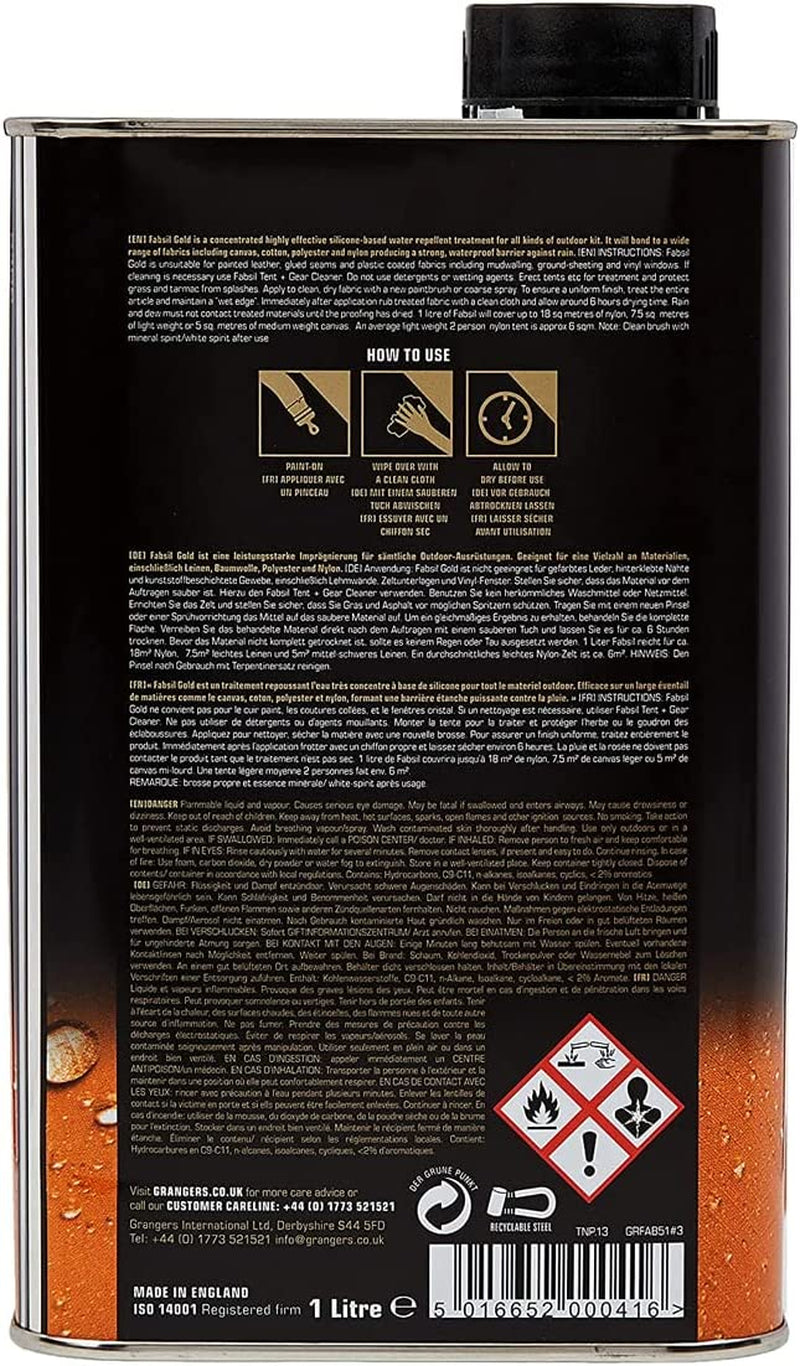 Trusted by professionals and outdoor enthusiasts for years, Fabsil Universal Protector is a high-performance, silicone-based waterproofing treatment, suitable for use on tents, boat covers, parasols, garden chairs, and umbrellas.