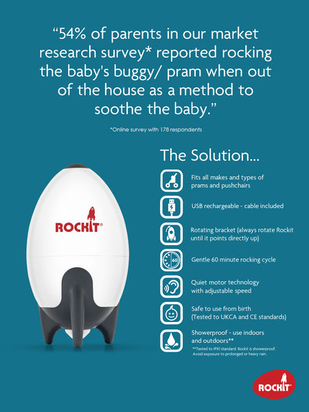 The Rockit uses a gentle rocking motion to safely soothe the baby. Scientific tests show the vibration level closely mimics the normal hand rocking of a pushchair and the soothing movement is gentler than a pushchair moving over paving stones.